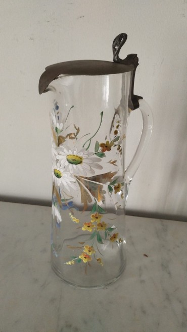 vidro e metal, decoração pintada e policromada, séc. XX, pequenas faltas e defeitos. Dim. - 34 cm