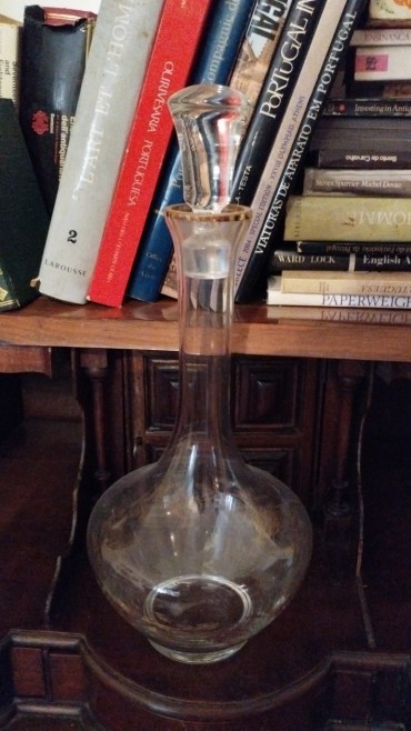 vidro, decoração com gravação a dourado, séc. XX, sinais de uso. Dim. - 40 cm