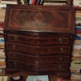 madeiras diversas, frente com barriga, puxadores em metal, séc. XX, interior com alguns defeitos mas dobradiças, faltas e defeitos. Dim. - 106x92x50 cm