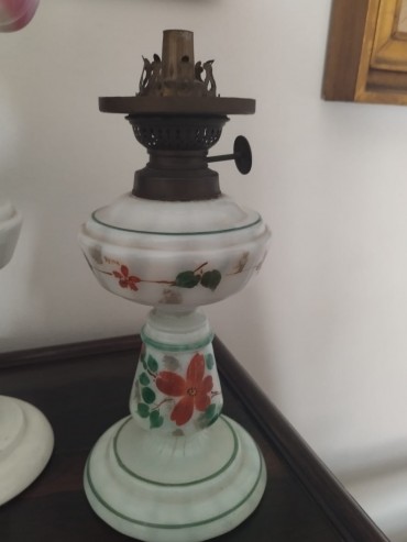 vidro, decoração policromada, séc. XX, sinais de uso. Dim. - 26 cm
