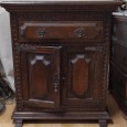 madeira, decoração entalhada, séc. XX, vestígios de insectos xilófagos, sinais de uso. Dim. - 85x75x35 cm