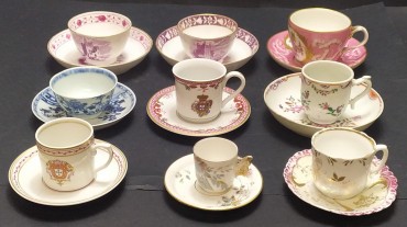 porcelana e faiança, decorações diversas lisas e policromadas, séc. XX, pequenos defeitos. Dim. - 13 cm (a maior)