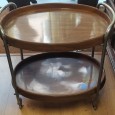 baquelite e material sintético, dois tabuleiros, estrutura em metal com rodizios, séc. XX, sinais de uso. Dim. - 64 x 44 x 64 cm