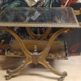 madeira e vidro, decoração entalhada, séc. XX, sinais de uso. Dim. - 89x47x70 cm