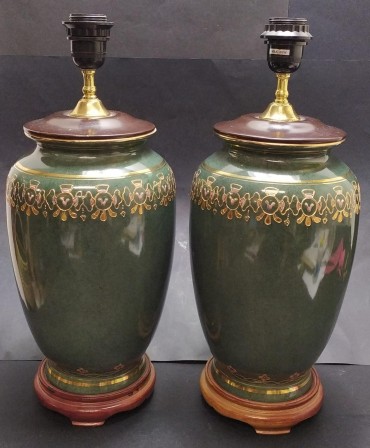 madeira e cerâmica, decoração monocromada e dourada, séc. XX, sinais de uso. Dim. - 46 cm
