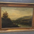 óleo sobre tela, assinado e datado de 1874, modura em madeira e gesso, defeitos na tela Dim. - 45 x 67 cm