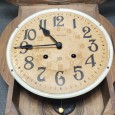 moldura em madeira, mostrador em folha de metal, séc. XX, mecanismo a necessitar de revisão, não testado, faltas e defeitos. Dim. - 41 cm