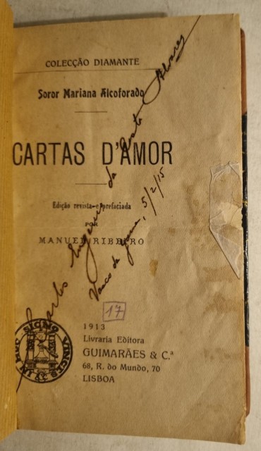 Soror Mariana Alcoforado, edição revista e prefaciada por Manuel Ribeiro, 1913, Livraria Editora Guimarães & Cª., Lisboa, Encadernação da época em pele.