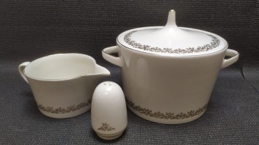 porcelana, monocroma a branco com filete a dourado, séc. XX, marcados, pequenos defeitos. Dim. - 11 x 16 cm (a maior)