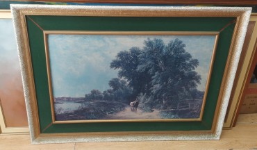 impressão sobre tela, séc. XX, emoldurado, pequenos defeitos. Dim. - 45 x 75 cm
