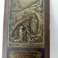 madeira e metal amarelo, decoração relevada, séc. XX, faltas e defeitos. Dim. - 15 x 7 cm