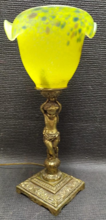 metal amarelo, globo em pasta de vidro, séc. XX, pequenas faltas e defeitos. Dim. - 29 cm