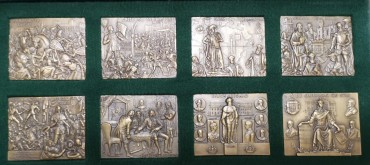 em bronze relevado, escola de Cabral Antunes (etiqueta com identificação), séc. XX, pequenos defeitos. Dim. - 6 cm (o maior)