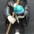 massa, decoração policromada, séc. XX/XXI, sinais de uso. Dim. - 30 cm