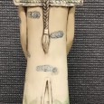 massa, decoração policromada, séc. XX, sinais de uso. Dim. - 35 cm