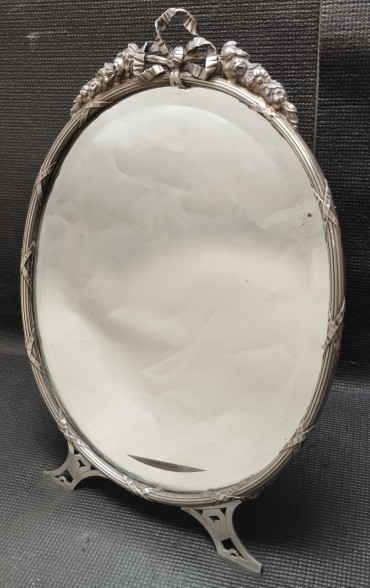 prata de 833 milésimos, decoração com «laça» e «flores», suporte em madeira, marca de contraste de Lisboa (1887-1937), marca de fabricante LEITÃO&IRMÃO. Dim. - 46 x 30 cm