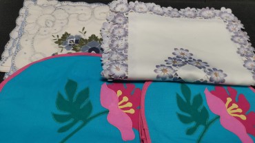 algodão, renda e tecidos diversos, séc. XX, sinais de uso.