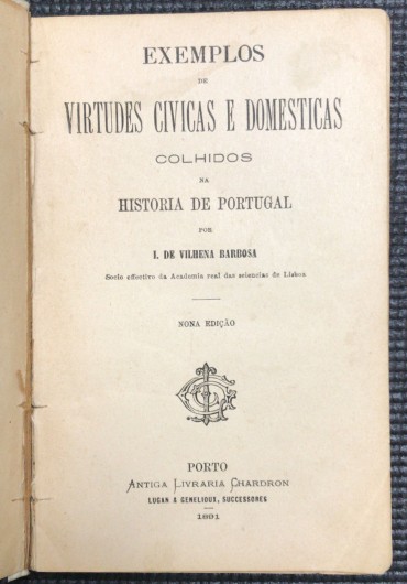 «Exemplos de Virtudes Civicas e Domesticas Colhidos na Historia de Portugal - 1891»