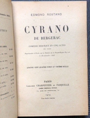 Edmond Rostand, ed. librairie charpentier et fasquelle, lombada em couro com dano, 215 págs., 1919.