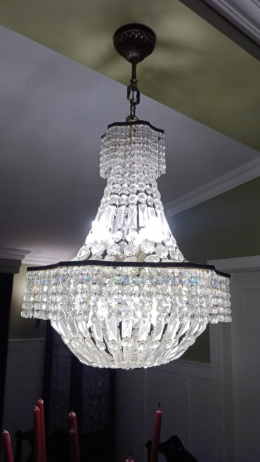 estrutura em metal, pingentes em cristal e vidro, séc. XX, pequenos defeitos. Dim. - 90 cm