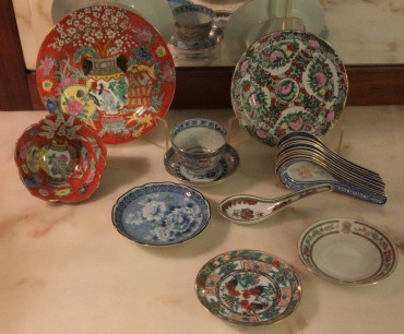 porcelana oriental, decoração policromada "Flores", séc. XX, marcados, pequenos defeitos. Dim. - 18 cm (o maior)