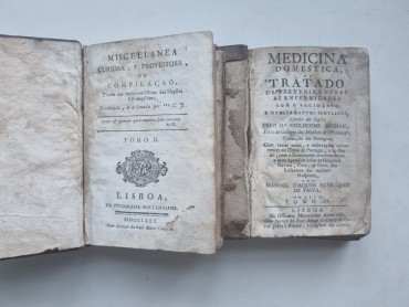 2 livros de diversa temática. , encadernação da época inteira em pele.