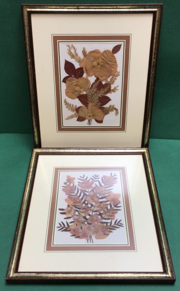 Flores secas, composição floral, passepartouts com destaque, moldura madeira lacadas a dourado; Dim.: 30cm.
