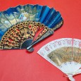 madeira esculpida e tecido, decoração policromada, motivos bucólicos e de casario pintados à mão, muitas faltas e sinais de desgaste; Dim.- 37cm (maior).