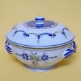 loiça regional de «Viana de Castelo«, Portugal, formato redondo, fundo branco, pintada à mão com motivos florais e geométricos em tons de azul e verde, marcado e assinado pelo artista ; Dim.- 12 cm x 20 cm.