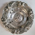 prata de 833 milésimos, decoração vazada e estampada "flores" e "volutas", contraste do Porto (1938-1984), sinais de uso. Dim. - 27 cm ; Peso: 205,7 g.