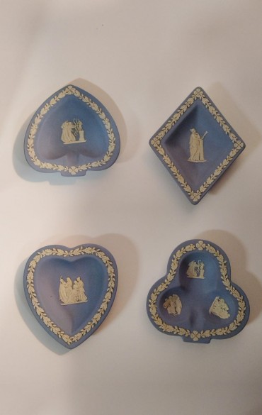 porcelana inglesa, marcada «Wedgwood», decoração a azul e branco, figurativa, sinais de uso; Dim.- 14 cm .