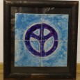 quatro azulejos policromados emoldurados, pequenos defeitos. Dim. - 46 x 41 cm