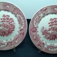 faiança da Fábrica de Sacavém, decoração monocroma a vermelho "Estátua", séc. XX, marcados. Dim. - 24 cm