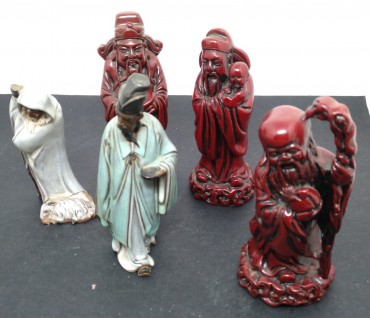 porcelana da China e celulóide, decoração policromada, séc. XX, dois partidos e colados. Dim. - 13 cm (o maior)