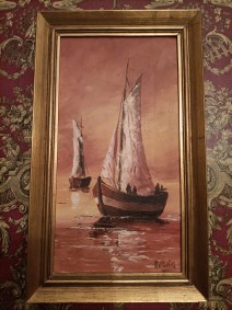 óleo sobre tela, assinado, sinais de uso. Dim. - 36 x 18 cm