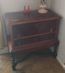 madeira, puxadores com madrepérola, séc. XX, sinais de uso. Dim. - 98x105x56 cm