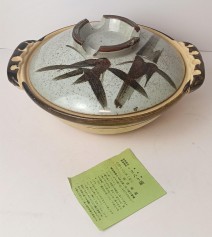 terracota, tampa vidrada, séc. XX, Japão, sinais de uso, com caixa. Dim. - 14 x 34 cm