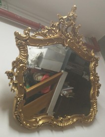 madeira, decoração entalhada e dourada, séc. XX, sinais de uso. Dim. - 89x95 cm