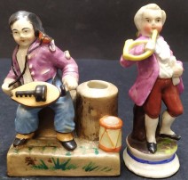duas esculturas em porcelana europeia, decoração policromada, séc. XX, pequenas faltas e defeitos. Dim. - 10 cm