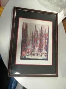 impressão colorida sobre tela colada sobre madeira, assinada. Dim. - 26 x 33 cm (moldura)