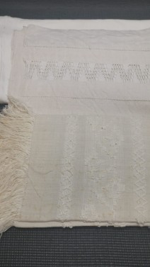 linho de tear e algodão, sinais de uso, picos de humidade.
