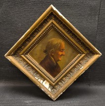 óleo sobre madeira, moldura em gesso com vestigios de xilófagos, séc. XX, pequenos defeitos. Dim. - 17 x 24 cm