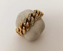 ouro bicolor de 800 milésimos, cravejado com 8 diamantes em talhe 8/8 e um em talhe de brilhante com peso aprox. de 0.34 ct., contraste do Porto (1938-1984). Peso: 5.4 g.
