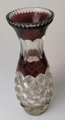 vidro bicolor, decoração lapidada, séc. XX, pequenas faltas e defeitos. Dim. - 28 cm