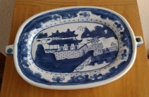 porcelana da China, decoração a azul "Paisagem oriental", séc. XX, marcado, pequenos defeitos. Dim. - 4 x 27 x 17 cm