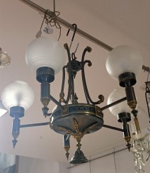 estrutura em metal, globos em vidro, séc. XX, pequenas faltas e defeitos. Dim. - 70 x 60 cm